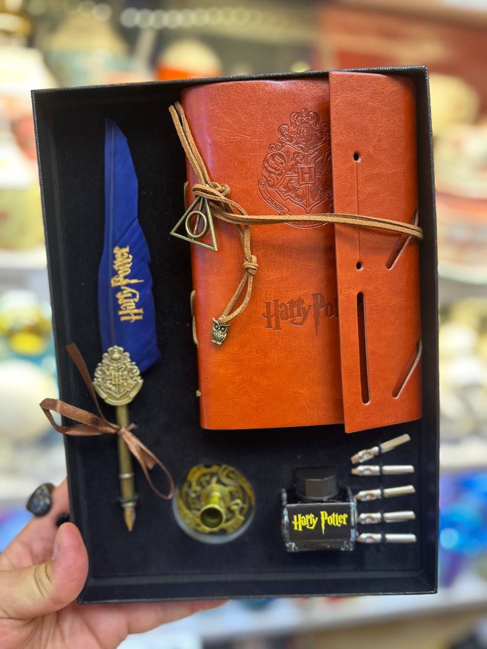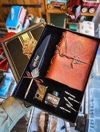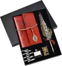 نوت جلد طبيعي ورق كرافت سادةو قلم حبر وسنون وحبارة واستاند قلم